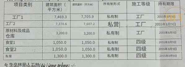 辅助设施:专业仓库 3,200 平方米;两栋员工食堂共 2,100 平方米,保障员工福利;车库 1,300 平方米